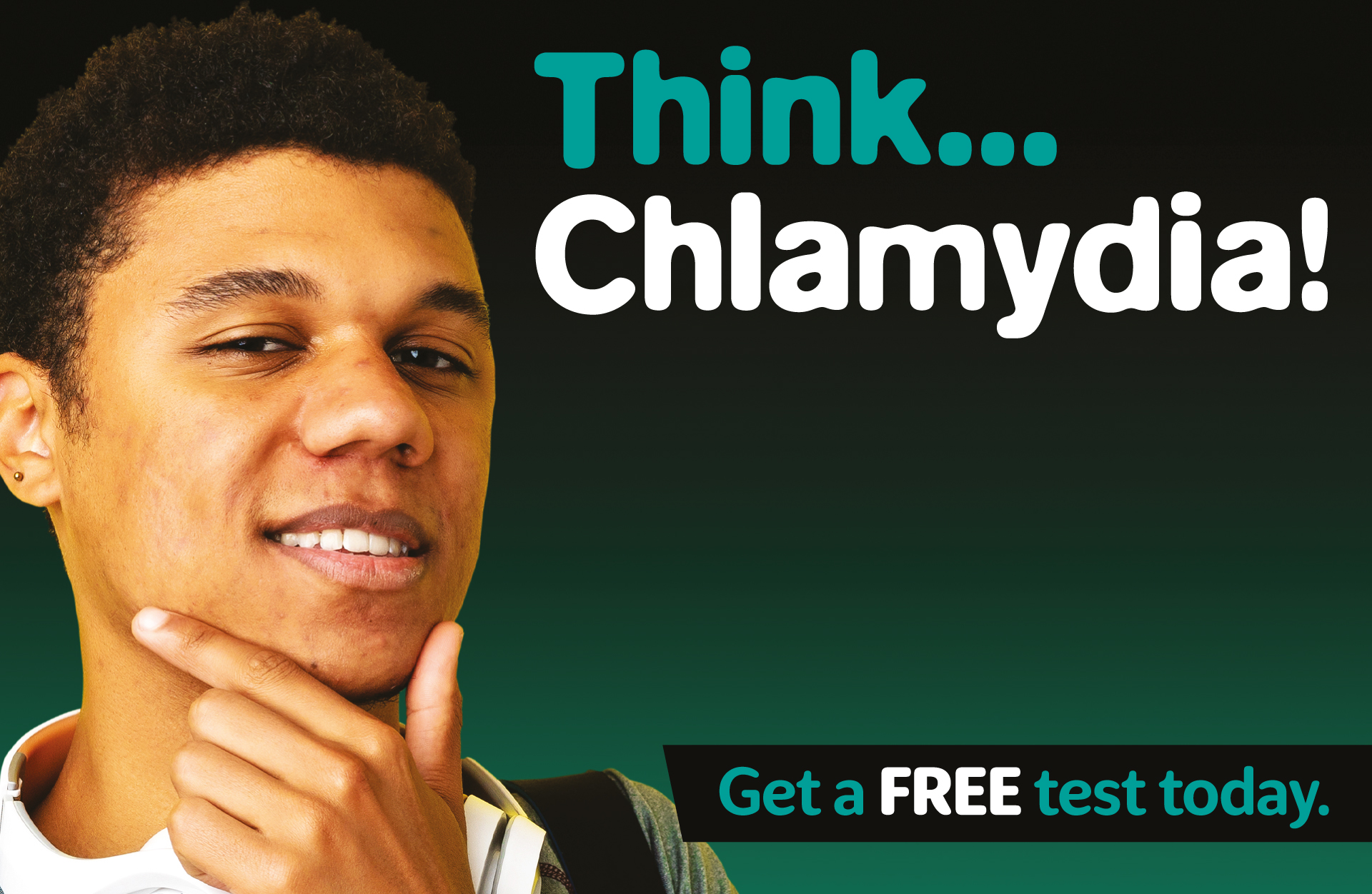 Think…Chlamydia! Social media graphic (get tested) – male/turquoise