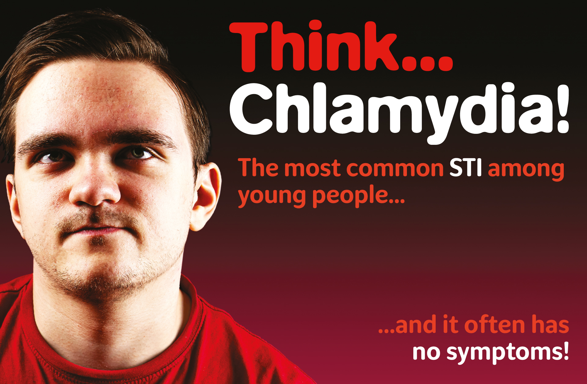 Think…Chlamydia! Social media graphic (no symptoms) – male / red